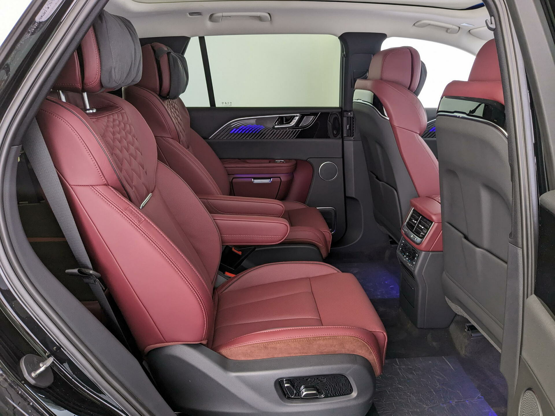Однако истинная суть этого автомобиля раскрывается на втором ряду. В топовой шестиместной конфигурации здесь установлены раздельные капитанские кресла, превращающие поездку в полет первым классом. Пассажирам доступен полный набор электрорегулировок, подогрев, вентиляция и функция массажа с несколькими спа-программами. Правое заднее кресло часто оснащается функцией полулежачего положения, позволяя буквально спать в дороге. Пространства для ног с избытком хватает даже для людей ростом под два метра, что неудивительно при внушительной колесной базе в 3110 мм. Панорамная крыша, простирающаяся почти на всю длину кузова, наполняет салон естественным светом, а многоцветная контурная подсветка создает уютную атмосферу лаунж-зоны в ночное время. Акустический комфорт заслуживает отдельного упоминания: благодаря двойному остеклению и отсутствию ДВС в салоне царит практически абсолютная тишина даже на высоких скоростях.