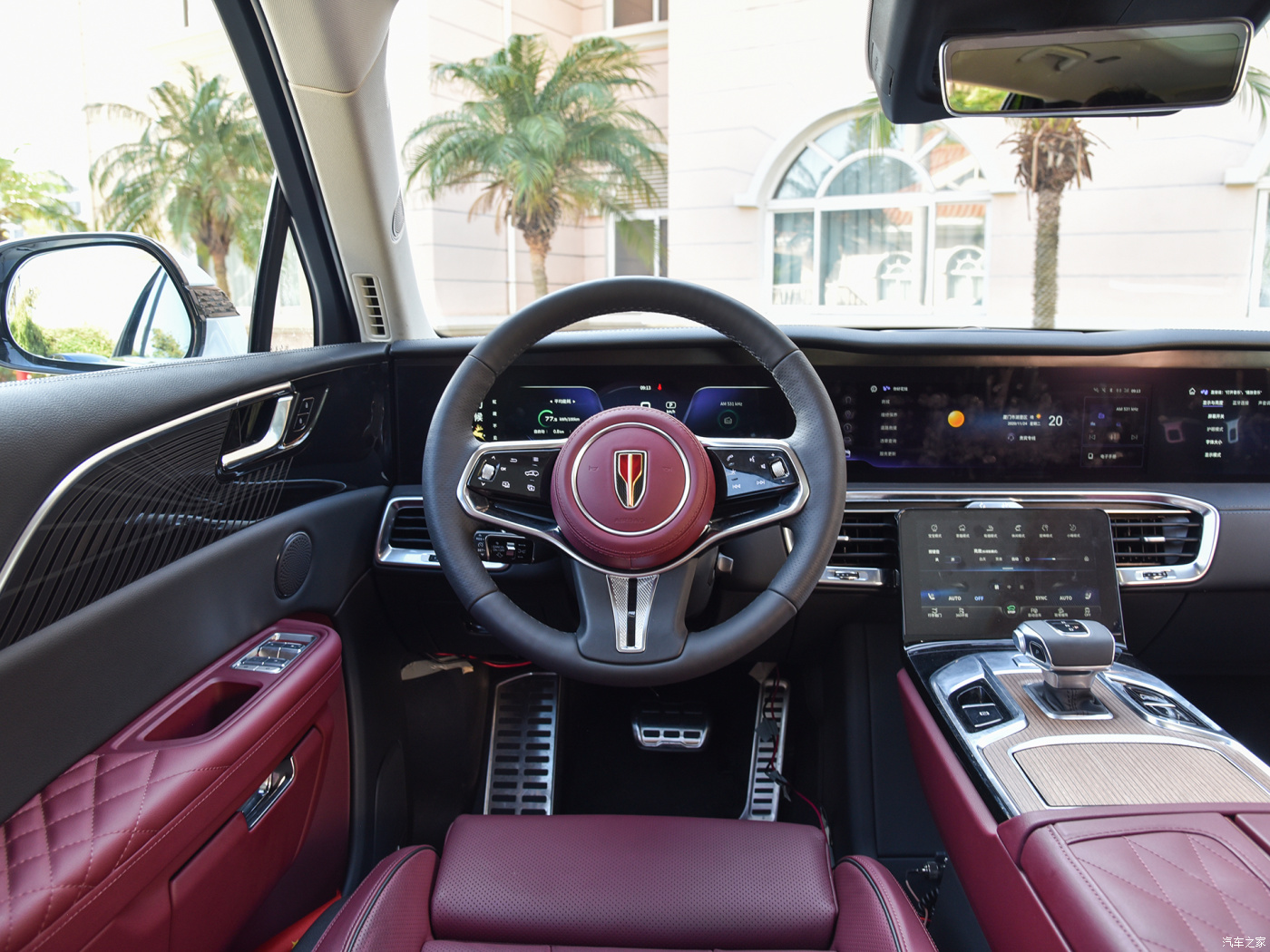 Попадая в салон Hongqi E-HS9, водитель и пассажиры оказываются в пространстве, где классическая роскошь встречается с бескомпромиссным цифровым будущим. Передняя панель представляет собой сплошной стеклянный горизонт, объединяющий сразу три дисплея: цифровую приборную панель, центральный мультимедийный экран и отдельный развлекательный монитор для переднего пассажира, позволяющий смотреть фильмы в дороге, не отвлекая водителя. Четвертый сенсорный экран, отвечающий за климат-контроль и настройки кресел, расположился на центральном тоннеле, плавно переходящем в массивный подлокотник. Качество материалов здесь действительно на уровне лучших европейских модных домов: дешевый гулкий пластик отсутствует как класс, все поверхности обшиты нежнейшей кожей наппа, шпоном натурального дерева или алькантарой, а хрустальный селектор трансмиссии добавляет интерьеру необходимого ювелирного блеска.