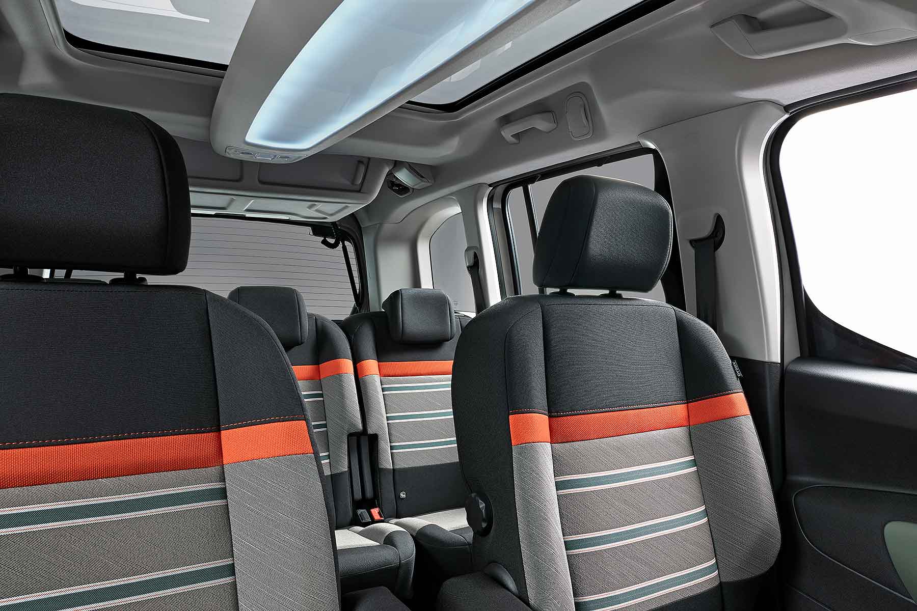 Система хранения внутри Berlingo — это настоящий инженерный шедевр. В общей сложности по всему салону разбросано около 27 различных ниш, полок и ящиков, суммарный объем которых достигает 186 литров. Знаменитая многофункциональная крыша Modutop в 2026 году получила встроенную светодиодную подсветку с регулировкой яркости и прозрачный отсек, проходящий через всю центральную часть потолка. Это не только добавляет света, но и позволяет хранить мелкие вещи под рукой у всех пассажиров.