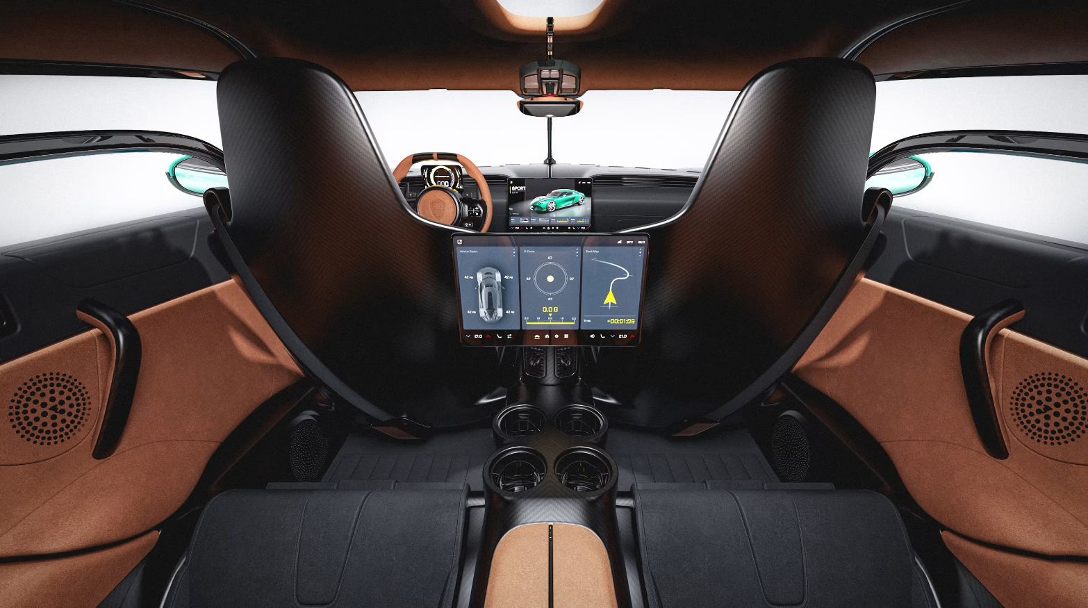 Внутреннее пространство Gemera — это манифест роскоши и функциональности. В отличие от большинства конкурентов, предлагающих формулу 2+2, здесь с комфортом могут разместиться четверо взрослых людей ростом до двух метров. Каждое из четырех сидений выполнено из углеволокна и обтянуто высокотехнологичной алькантарой или кожей тончайшей выделки.