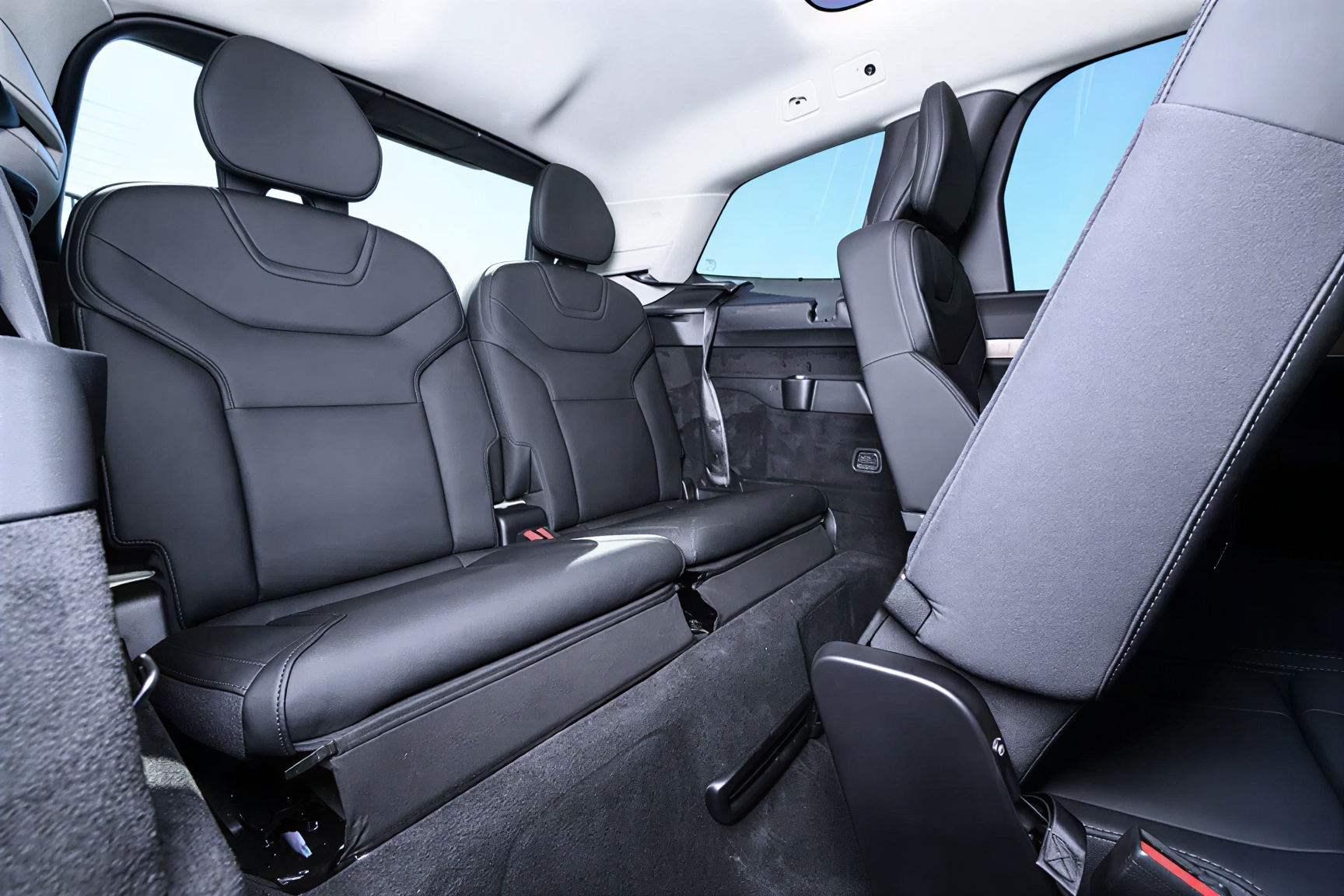Третий ряд сидений в EX90 — это не просто маркетинговое дополнение, а полноценные места, пригодные для взрослых пассажиров в поездках средней дальности. При этом даже с разложенными семью местами багажник сохраняет достаточный объем для нескольких сумок, а дополнительный передний багажный отсек под капотом идеально подходит для хранения зарядных кабелей и мелких вещей.