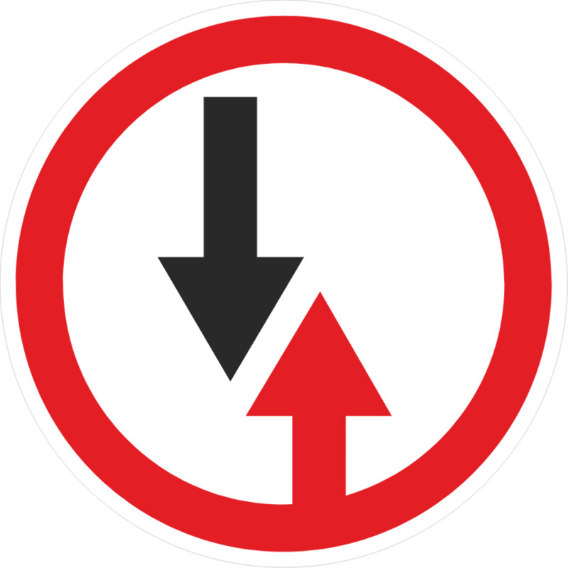 Особая категория знаков приоритета регулирует движение не на перекрестках, а в узких коридорах — на мостах, в тоннелях или на участках ремонтных работ. Здесь вступает в силу цветовая дуэль: красный круг против синего квадрата. Круглый знак с красной окантовкой «Преимущество встречного движения» работает как запрещающий сигнал: он обязывает уступить дорогу встречному потоку. Его визуальный антипод — синий квадрат «Преимущество перед встречным движением» — дает карт-бланш на проезд.