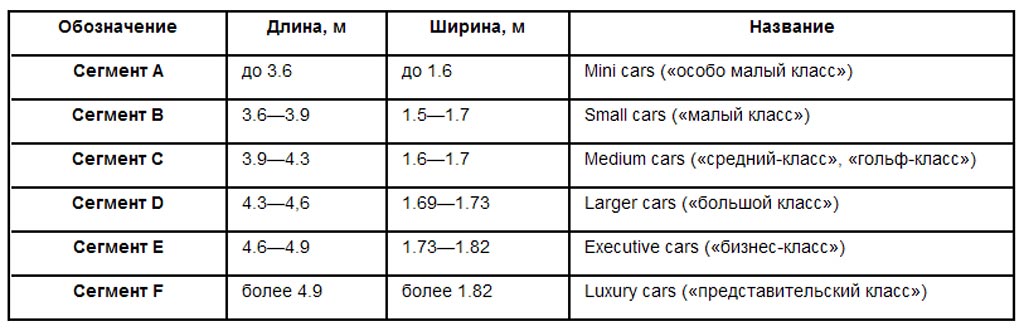 Принятая в Европе система сегментации, разработанная Европейской комиссией, базируется преимущественно на габаритах транспортного средства. Это наиболее логичный подход, так как именно длина кузова и колесная база определяют простор в салоне и возможности автомобиля. Тем не менее, жестких границ в сантиметрах не существует. Современный автопром склонен к «акселерации»: с каждым новым поколением модели слегка подрастают, часто вторгаясь на территорию старших собратьев. Помимо размера, на принадлежность к той или иной категории влияют цена, уровень оснащения и имиджевая составляющая бренда.