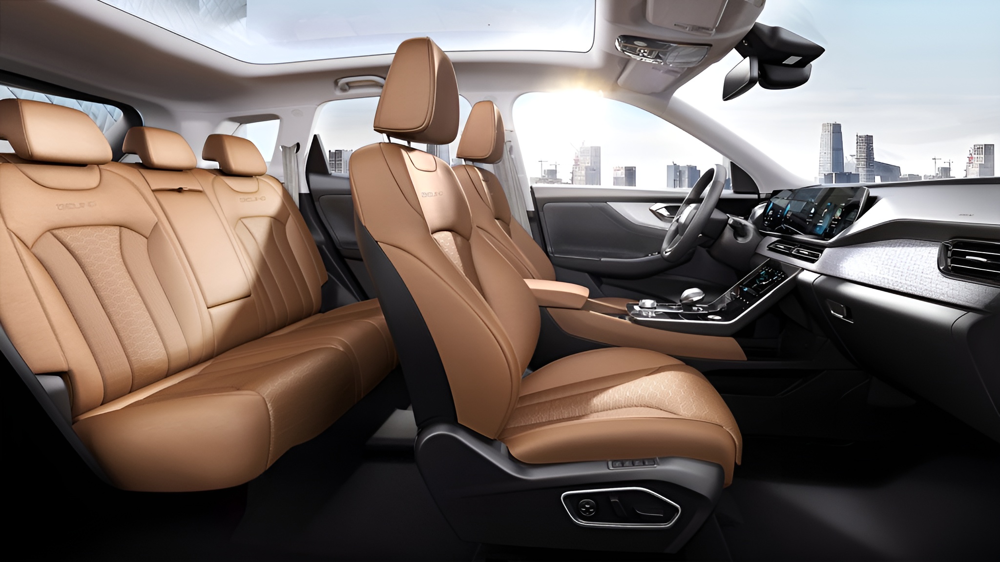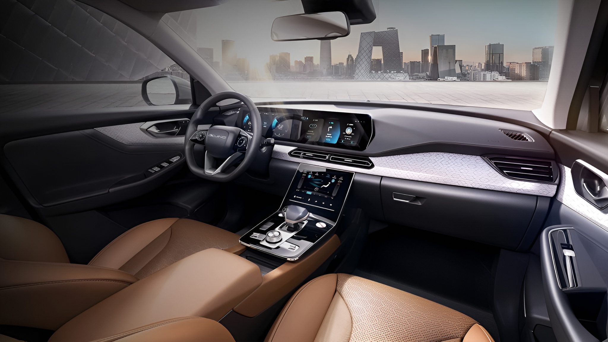 Попадая в салон BAIC X7, мгновенно понимаешь, куда ушла львиная доля бюджета разработки. Интерьер встречает водителя атмосферой техно-люкса, которая явно вдохновлена современными моделями Mercedes-Benz и Land Rover, но переосмыслена на свой лад. Архитектура передней панели построена вокруг трех цифровых дисплеев. Приборная панель и экран мультимедийной системы объединены под единым стеклом, создавая панорамный кокпит. Третий экран, расположенный на центральной консоли, отвечает за управление климат-контролем и функциями комфорта. Выглядит это потрясающе, особенно в вечернее время, когда салон наполняется мягким свечением атмосферной подсветки, цвет которой можно выбирать под настроение.