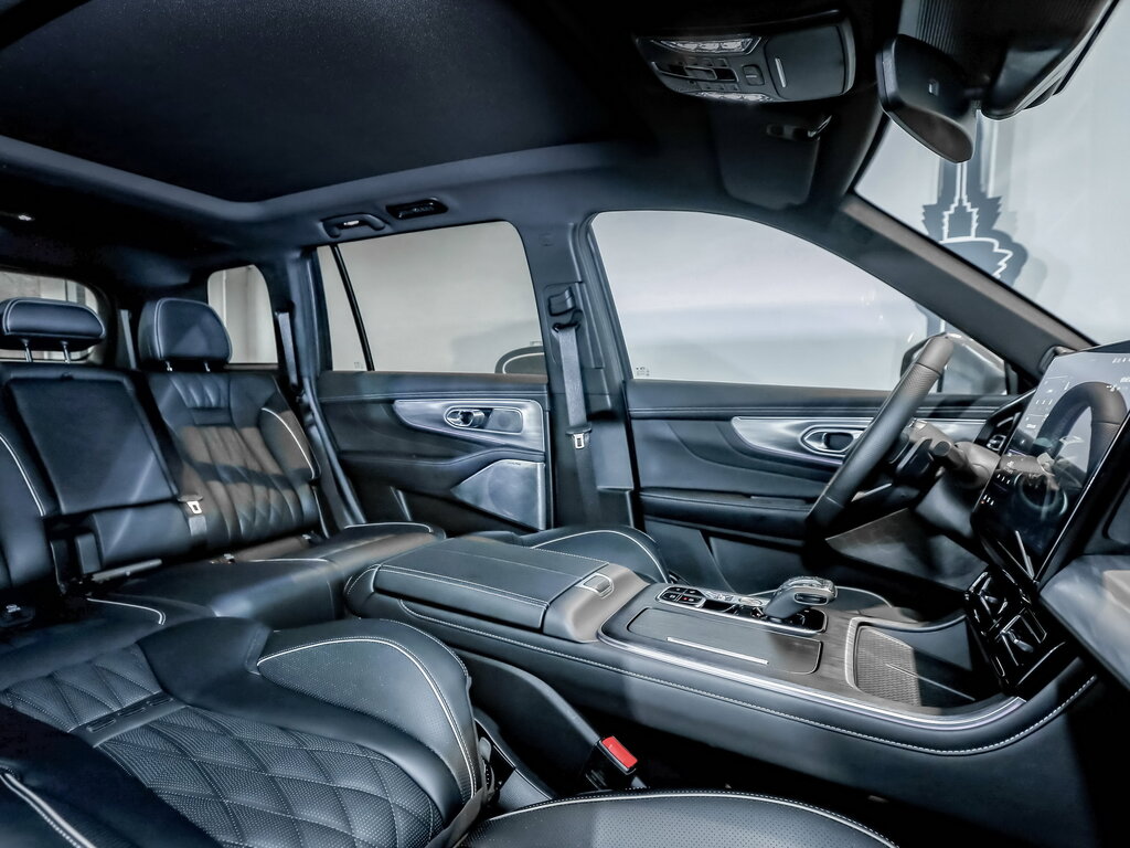 Светотехника — отдельный вид искусства. Передние фары со сложной геометрической конструкцией и механическими шторками, открывающимися при запуске двигателя, создают настоящий перформанс. Это не просто светодиоды, а сложный инженерный узел, подчеркивающий статусность модели. При длине почти в пять метров и трехметровой колесной базе, GS8 не выглядит тяжеловесным благодаря рубленым граням кузова и «парящей» крыше. В 2025 году, когда многие производители ушли в биодизайн и «обмылочные» формы, строгая геометрия GAC воспринимается как глоток свежего воздуха и дань классической школе мужественных внедорожников.