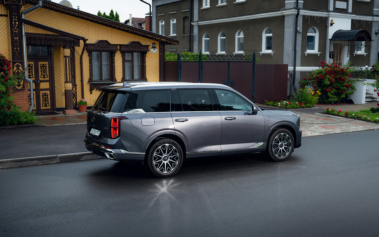 Внешность GAC GS8 всегда была его сильной стороной, но в гибридном исполнении дизайнеры выкрутили ручку пафоса на максимум. Автомобиль выглядит монументально, словно высечен из цельного куска гранита. В отличие от бензиновой версии, гибрид получил иное оформление передней части. Огромная решетка радиатора спускается от кромки капота до самого низа бампера, и ее рисунок действительно напоминает чешую дракона. Вживую это смотрится подавляюще и дорого, заставляя соседей по потоку почтительно уступать дорогу.